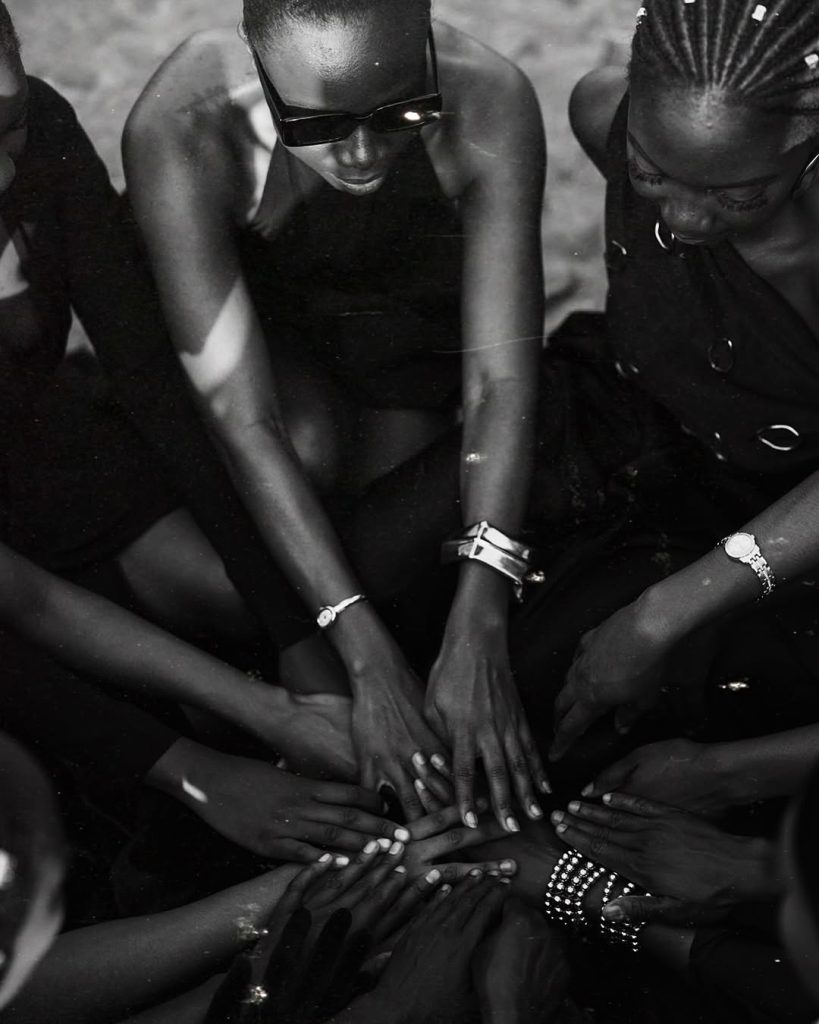 Uno de los creadores sudafricanos más importantes, Thebe Magugu, lleva desarrollando desde hace diez años lo que él describe como una «moda afro-enciclopédica». Ganador del Premio LVMH en 2019, varios de sus diseños ya forman parte de las colecciones permanentes del Costume Institute de Nueva York, inscribiendo su trabajo en la historia de la moda contemporánea.