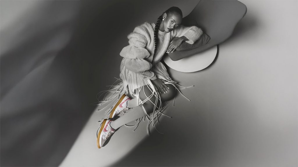 En esta edición especial, la sneaker luce un ante azul intenso con detalles blancos en contraste y una suela de goma marrón. En cuanto a los acabados, destacan los ojales en forma de estrella y los motivos en relieve en el talón, que rinden homenaje a las mujeres a través de un diseño sutil y refinado.