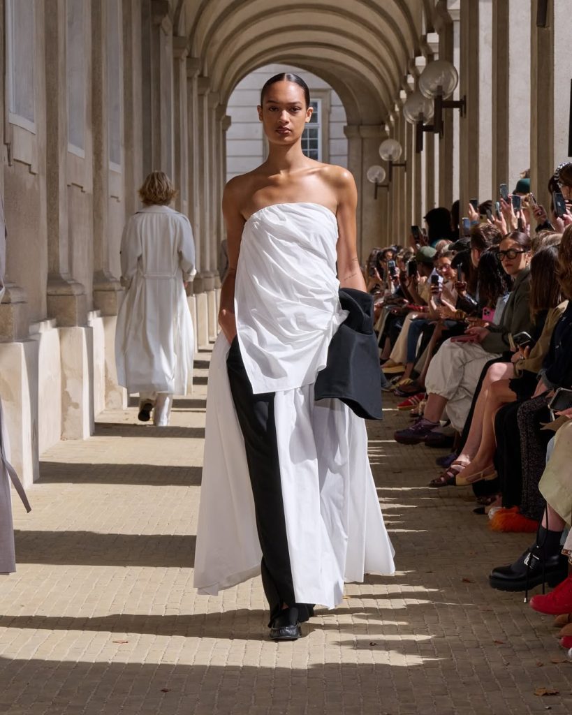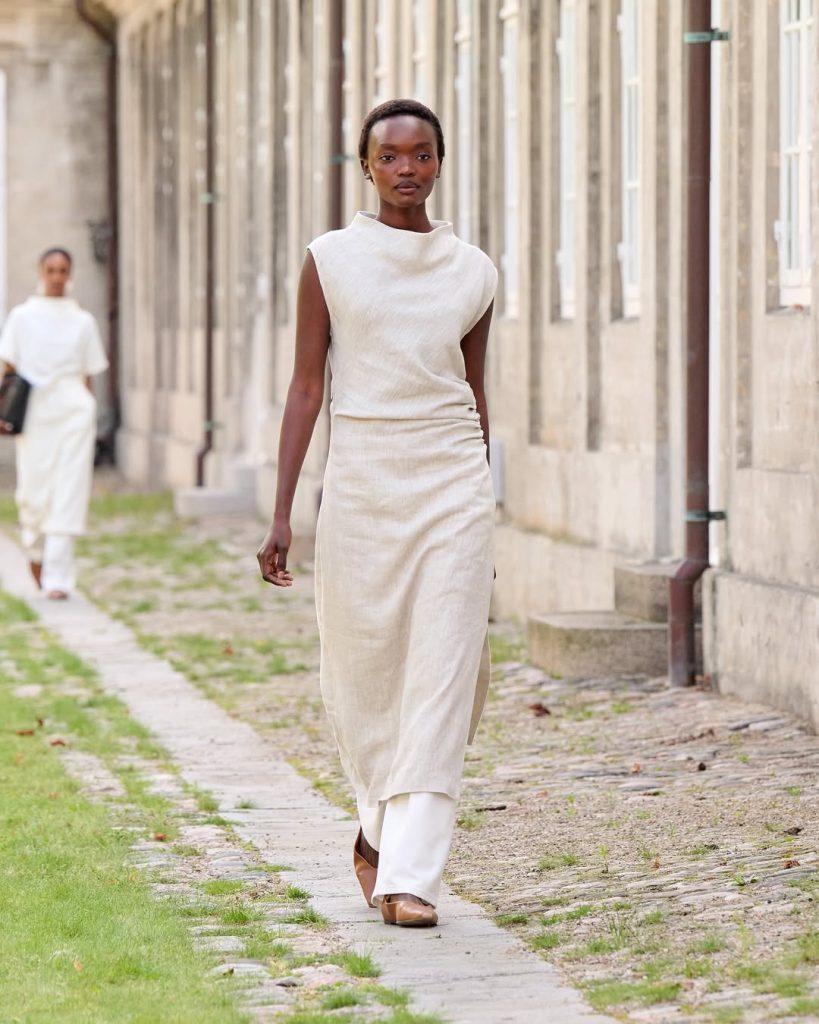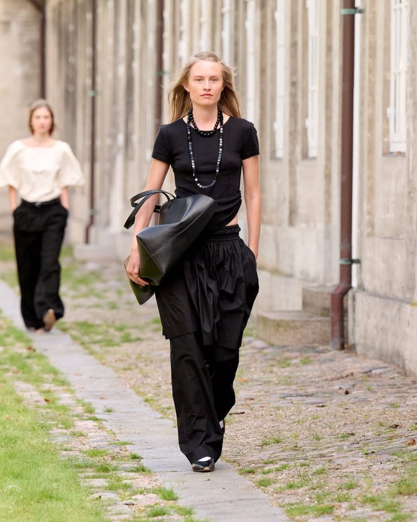 Para la temporada Primavera-Verano 2026, Charlotte Eskildsen se ha inspirado en el universo ecuestre, creando una colección de 28 siluetas minimalistas construidas alrededor de una paleta en tonos neutros (beige, marrón, blanco, negro) salpicados con delicados toques de rosa pálido. Las botas altas, que cubren completamente la pantorrilla, aportan una cierta rigidez que contrasta con una colección marcada por la fluidez.