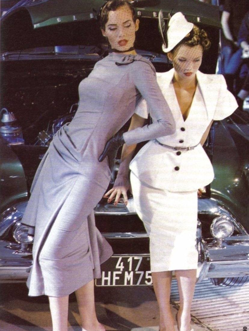 Galliano se inspiró en la figura de la pin-up, que había perdido protagonismo desde los años 70, alejándose de lecturas demasiado literales y reinterpretando este mito femenino con sutileza. Para ello, mezcló la sensualidad evidente del icono estadounidense con la precisión del tailoring británico, creando una pin-up que no solo se exhibía, sino que dominaba a la perfección su propia imagen: silueta en forma de reloj de arena, cintura marcada, hombros estructurados, vestidos largos y fluidos… Las prendas se convirtieron en una auténtica herramienta narrativa.