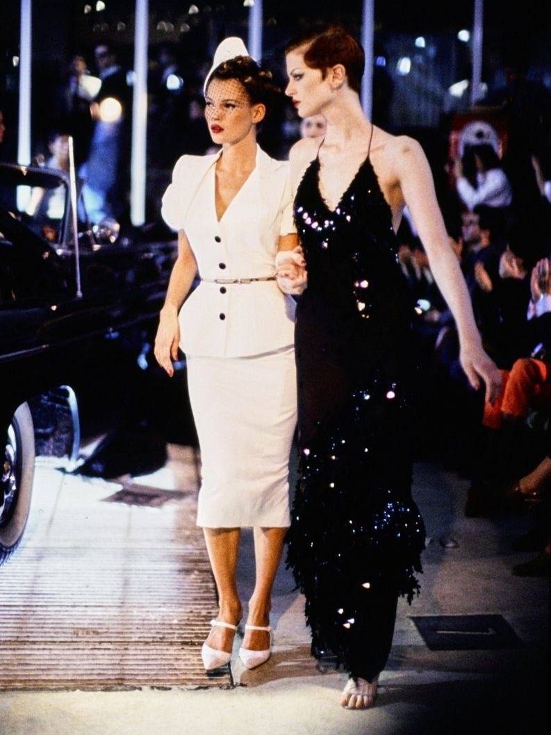 En la temporada Primavera/Verano de 1995, un desfile comenzó con dos horas de retraso en París. Madonna abandonó la sala molesta, aunque terminó usando una de las piezas clave del desfile en su videoclip Take a Bow. Este fue uno de los momentos más destacados de la carrera de John Galliano: la presentación de una colección inspirada en la estética pin-up, reinterpretada con la precisión del tailoring inglés. Una versión sexy y precisa, fantasiosa sin caer en la caricatura, que consagró a Galliano como un prodigio. Treinta años después, este desfile sigue siendo una referencia absoluta en la historia de la moda contemporánea.