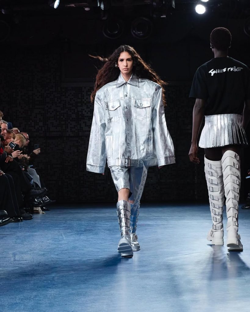 El tailoring, en denim o en franela, se diseña con la misma rigurosidad técnica que un traje clásico, con una paleta de colores más bien sobria (negro, gris, blanco), pero con infinitas experimentaciones. Al igual que Jeanne Friot, el casting es mixto, una prueba más de que la binaridad de género del evento es un criterio obsoleto.