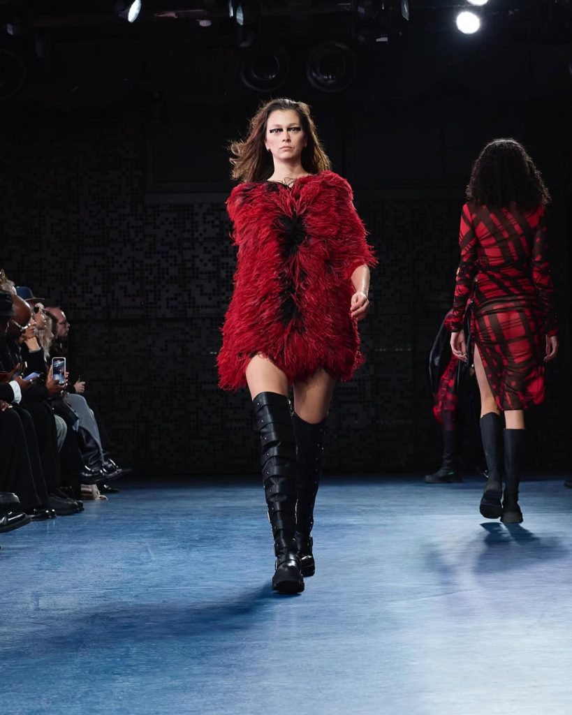Con una paleta minimalista (negro, blanco, rojo y toques metálicos), Jeanne Friot va directa al grano: desviar, fluidificar, pero sobre todo resistir. Su enfoque comprometido también se refleja en su destacada intervención al micrófono de Saveria Mendella en el pódcast Les Gens de la mode, episodio “QUEER”.