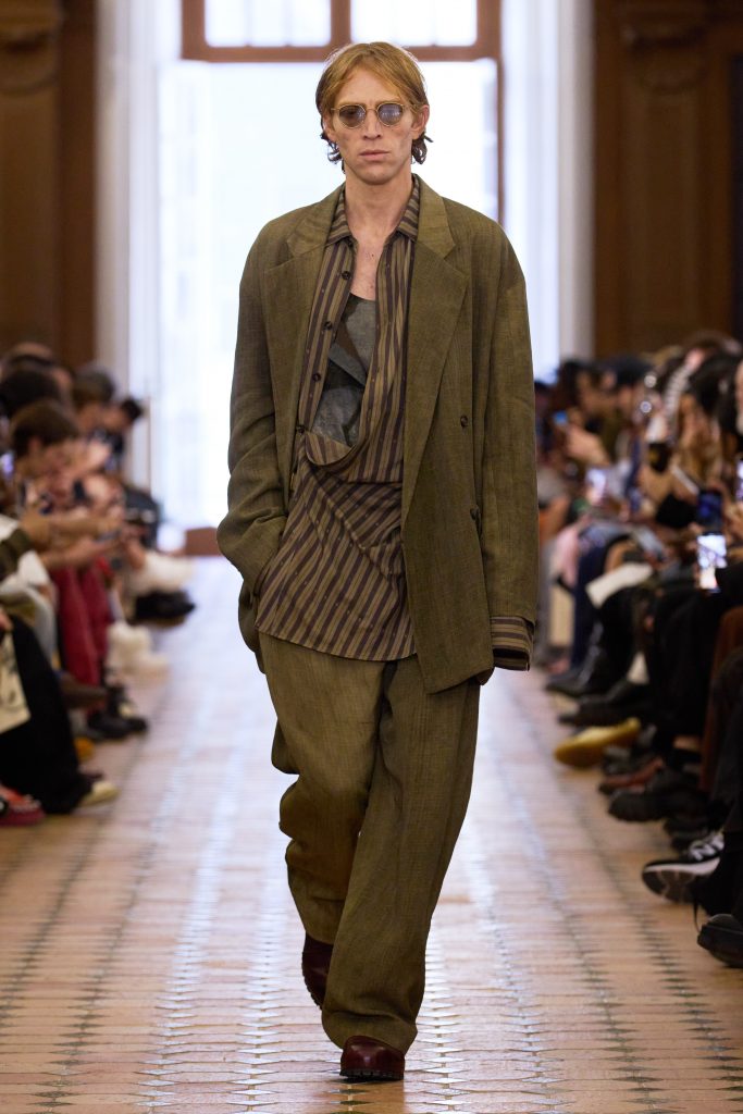 Con sus colecciones llenas de referencias literarias (desde Bel-Ami de Maupassant hasta El extranjero de Camus), Louis Gabriel Nouchi impone desde hace algunas temporadas una visión de la moda cerebral, sensual e inclusiva. Sus diseños, que parecen cortados con un bisturí, deconstruyen los arquetipos masculinos sin borrarlos del todo.