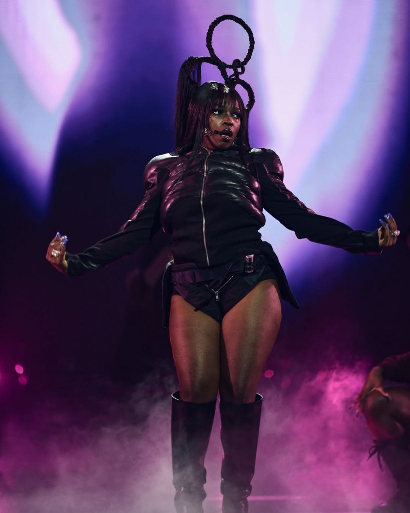 Peinada con dos cuernos y vestida con un romántico vestido blanco con lazada y caderas amplificadas, aprovechó para dedicar su premio “a todas las chicas negras un poco extrañas”. Una frase que resuena como un manifiesto para la artista francesa de origen congoleño.
