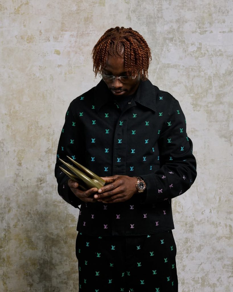 Por su parte La Mano 1.9, revelación masculina del año, prefirió mantenerse fiel al estilo streetwear con un conjunto informal pero de alta gama firmado por Louis Vuitton. Un gusto que reafirmó en el escenario durante su actuación junto a Genezio, donde cambió el icónico monograma de la marca francesa por la discreción de un chándal de Nike.