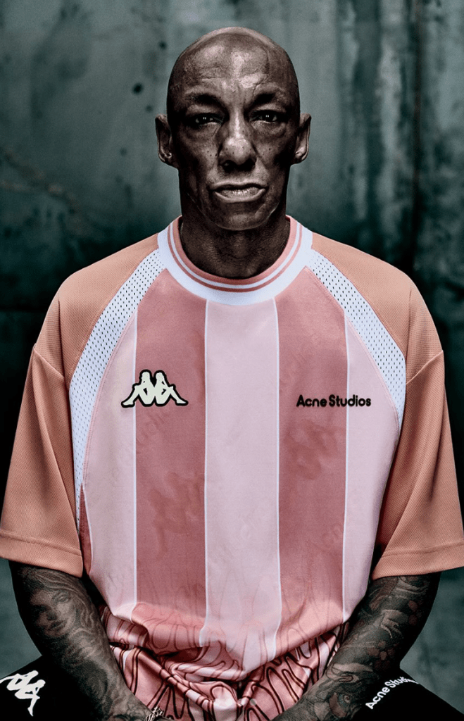 Una clara prueba de que esta tendencia sigue en auge es que Acne Studios se acaba de asociar con la emblemática marca italiana Kappa, conocida por haber sido la primera en patrocinar a un equipo de fútbol: la Juventus FC en 1979. Esta colección cápsula, compuesta por unas quince piezas, se inscribe en el “bloke-core”, una estética basada en el look de los aficionados británicos.