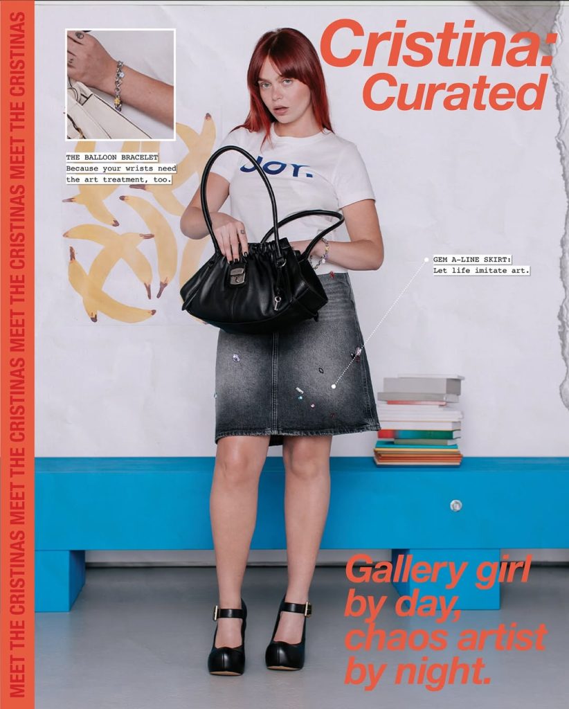 En un principio, las fotos clásicas de la campaña fueron remplazadas por una estrategia de teasing perfectamente programada. El bolso apareció primero en manos de las invitadas al desfile: la modelo Jaylene Cruz, la creadora de contenido Isa Sung o la estilista Sierra Rena. Todas participaron en un improvisado juego “¿Qué hay en mi bolso?” en las redes de la marca, ayudando a dar una vida real al bolso Cristina. Un accesorio recién lanzado, pero ya adoptado por unanimidad.