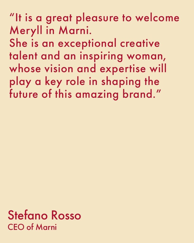 Marni atraviesa un momento decisivo en su historia. Aunque está en pleno crecimiento, la marca tiene dificultades para competir con las otras firmas del grupo OTB, sobre todo con Maison Margiela o Diesel, que se encuentran en plena ascensión. Fundada en 1994, Marni logró imponerse rápidamente a nivel internacional, con boutiques transformadas en galerías o residencias de artistas, muy alejadas del concepto clásico de tienda.