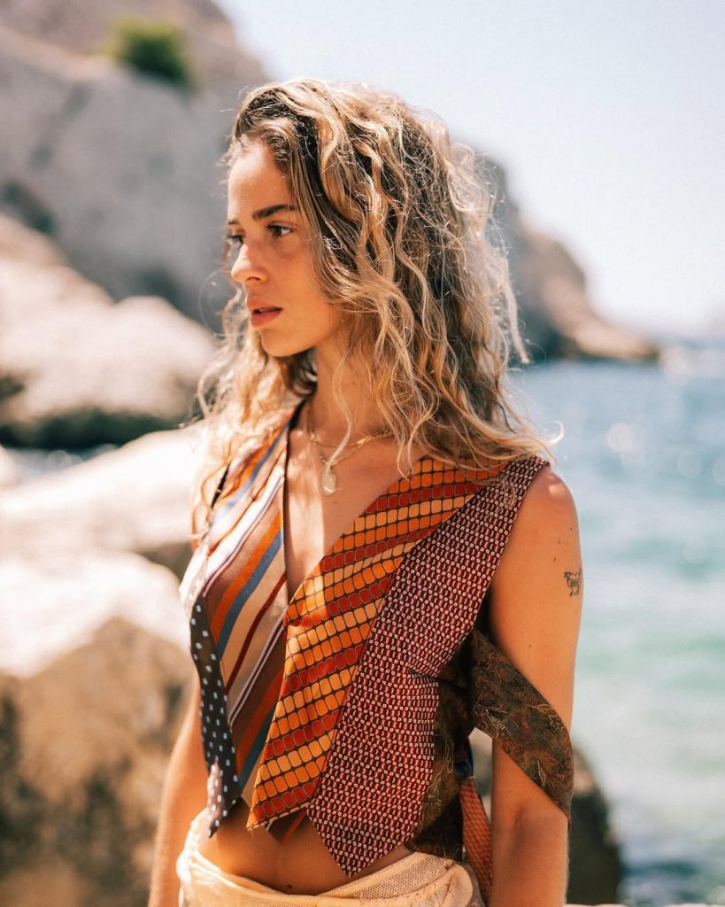 Así, cada pieza es única, fruto de un savoir-faire artesanal y de un enfoque responsable. Lucie no se limita a crear: también comparte su pasión ofreciendo talleres participativos, visitas a tiendas de ropa de segunda mano en Marsella e incluso sesiones de team-building centradas en la moda sostenible.