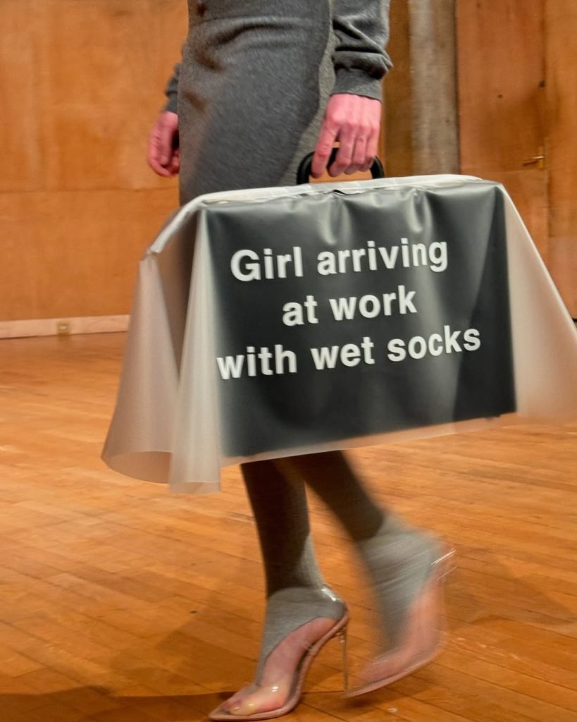 En particular, propone las sorprendentes “thong socks”, una especie de calentadores minimalistas que cubren la pierna pero dejan el pie al desnudo. Una reinvención conceptual del leg warmer, popularizada por la creadora de contenidos Lara Violetta, embajadora fiel de la marca. Para dar a conocer la singularidad de esta pieza, Julie Kegels ha colaborado con Converse para crear un accesorio que fusiona zapato y calentador. Una pieza puramente decorativa que ilustra a la perfección esta nueva era del accesorio.
