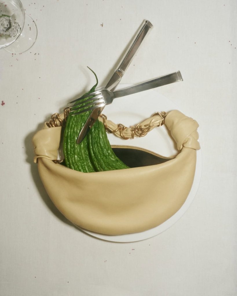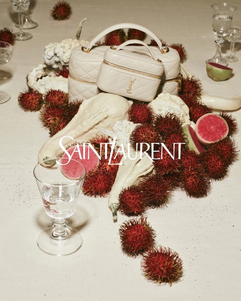 Otras marcas como Valentino o Saint Laurent optan por un enfoque más intimista, pero igual de creativo, convirtiendo la mesa en un terreno de expresión donde los bolsos y los accesorios más icónicos se presentan en cuidadas puestas en escena culinarias, rodeados de alimentos o platos sofisticados. Cada imagen se transforma en un pequeño teatro, donde el lujo se mezcla con la gastronomía y la cercanía, creando una atmósfera cálida e irresistible que anuncia, de manera sutil, la llegada de las fiestas de fin de año.