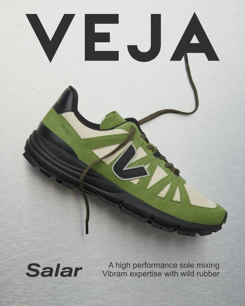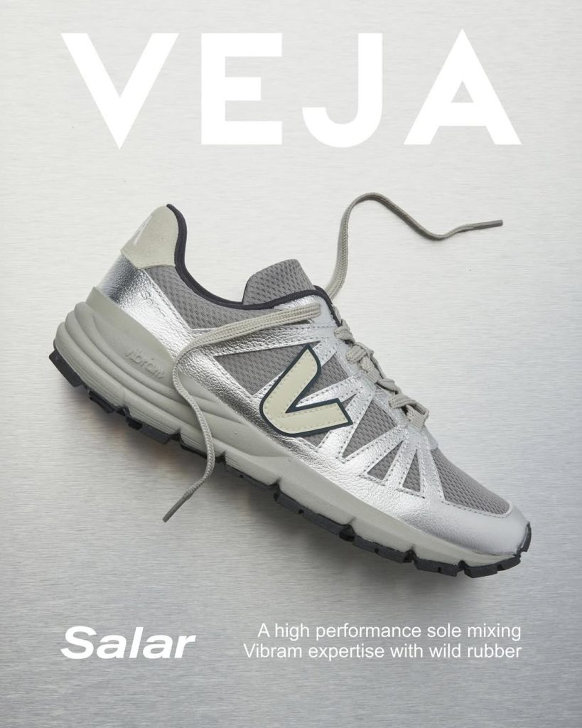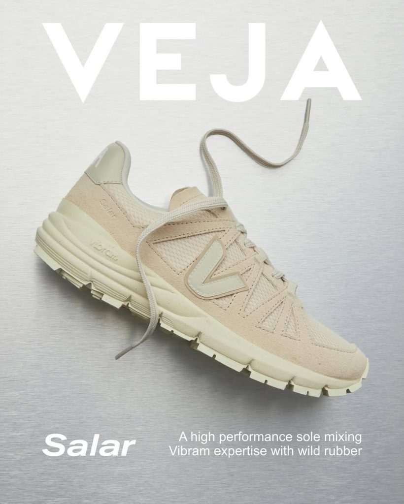 La marca ética Veja se une a Vibram, muy conocida por sus suelas, para crear la Salar: una zapatilla robusta y técnica, diseñada tanto para el ecosistema urbano como para recorrer los senderos de montaña.