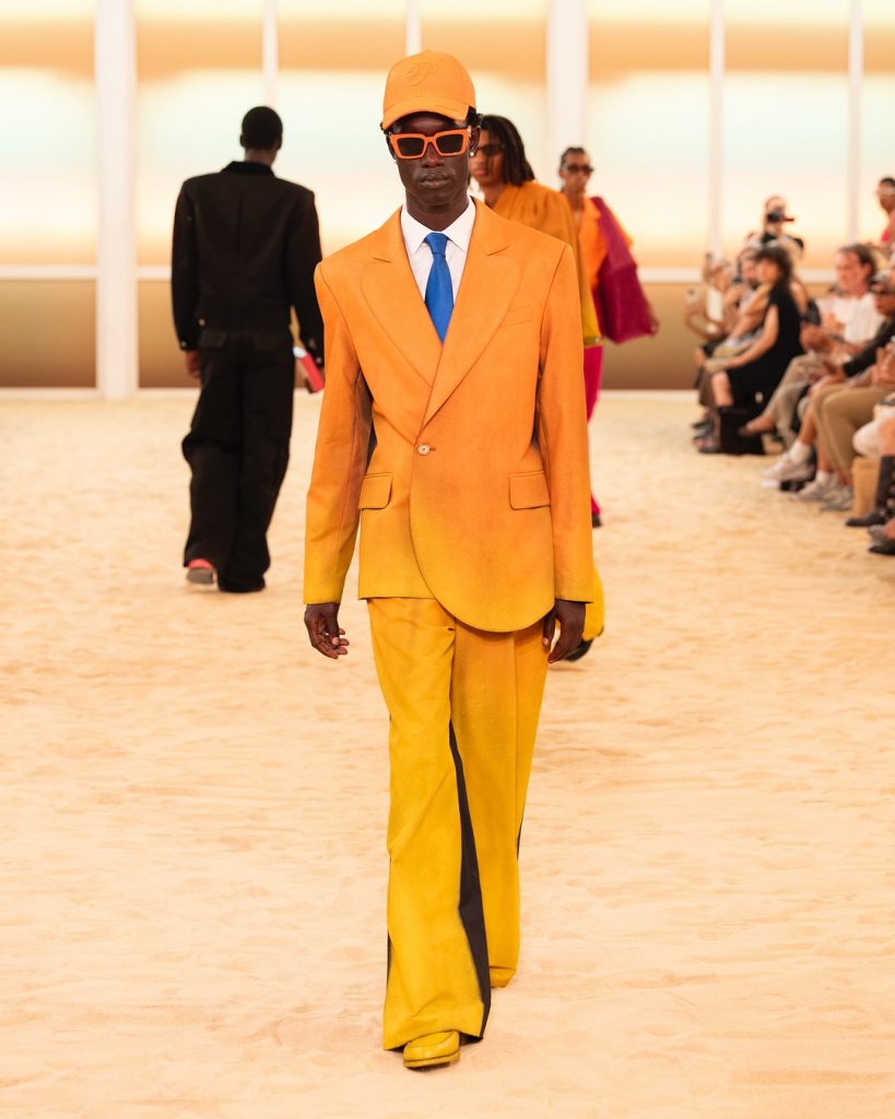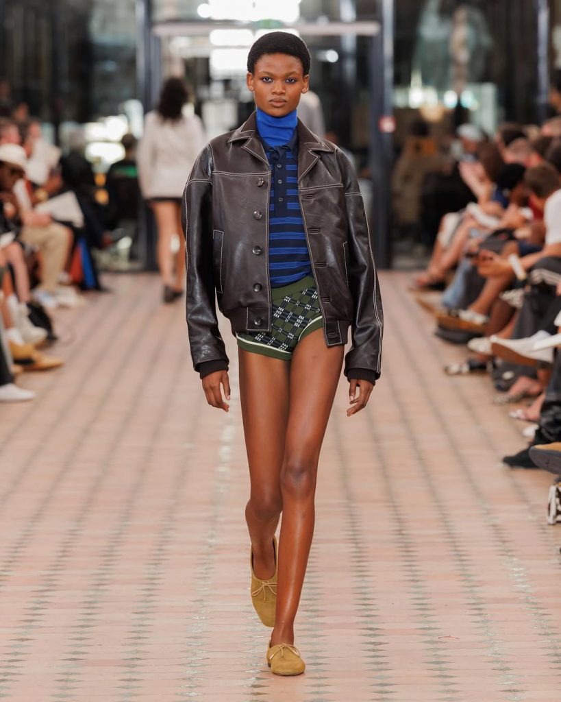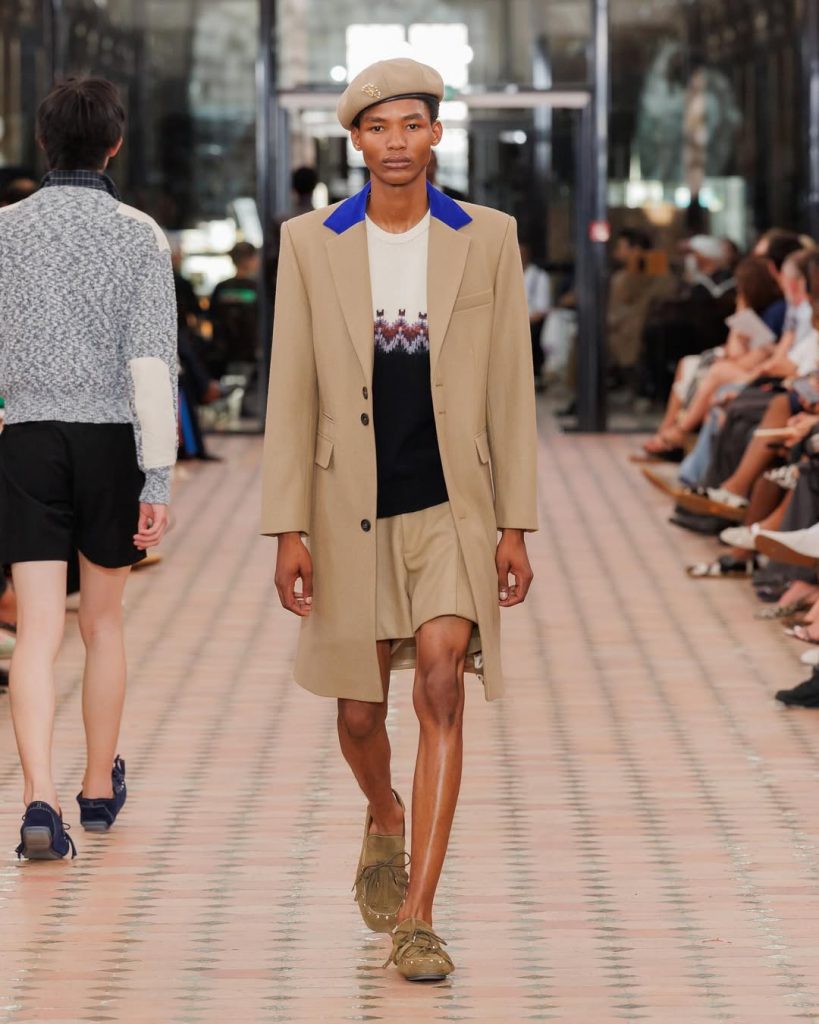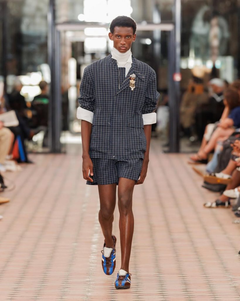 Los pantalones cortos, pieza central de la colección, oscilan entre la despreocupación veraniega y el rigor del tailoring. El vestuario oscila así entre un workwear refinado y looks de noche, sin perder nunca su hilo conductor. Los años 60 y 70 están muy presentes, no para recrear una época, sino para aprovechar de sus símbolos: afirmación, belleza negra, liberación de los cuerpos y de los géneros.