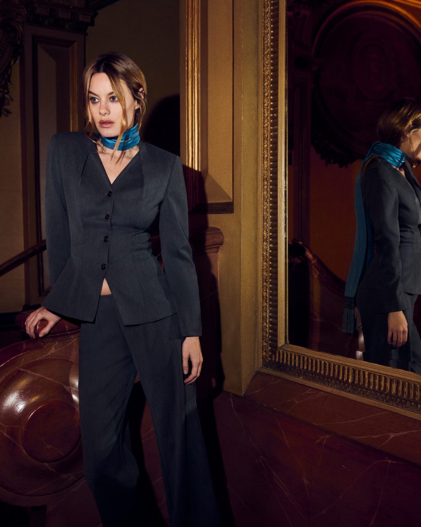 Cada prenda refleja el gusto de Camille por los contrastes. Una elegancia atemporal con un toque ligeramente desenfadado, que se traslada a siluetas que unen la sofisticación parisina con la despreocupación californiana. Un reflejo de la vida de Camille, dividida entre Los Ángeles y París.