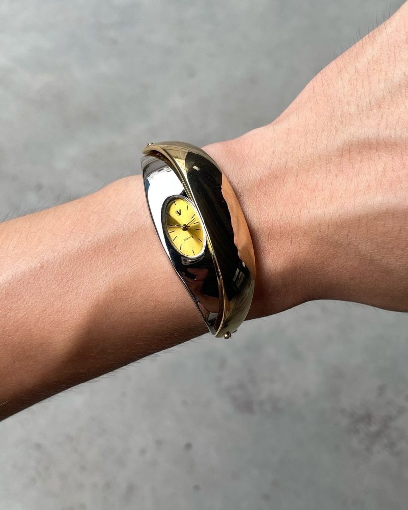 Algunos, como los modelos joya de Valentino o Calvin Klein de los años 90, están a medio camino entre pulsera y reloj. Un accesorio dos en uno ideal para quienes no quieren sacrificar su feminidad. Para las más deportistas, el Triax de Nike regresa con fuerza. Un reloj icónico de los años 2000 de forma asimétrica, muy demandado en el mercado de segunda mano. Ya sean sofisticados o ergonómicos, estos modelos retrofuturistas son muy apreciados por los amantes de lo vintage.