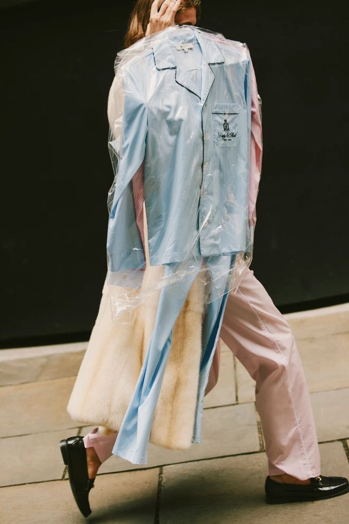 Ponerse un pijama para salir no es símbolo de dejadez o pereza, ya que requiere cierta maestría. ¿Cuál es la clave? La mezcla de estilos. Un pantalón de pijama se vuelve sofisticado al combinarlo con una chaqueta de traje masculina; un camisón con botones es un bonito vestido bajo un trench fluido; un camisón lencero se lleva de día con bailarinas o de noche con slingbacks. En cuanto a los accesorios, el secreto está en un bolso pouch, unas gafas maxi y una acumulación de joyas.